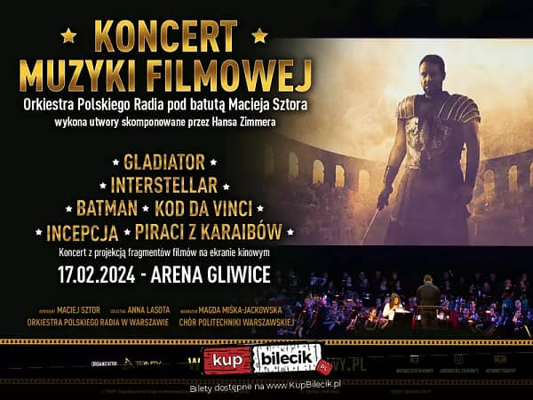 17 lutego 2024 w ARENA GLIWICE , Orkiestra Polskiego Radia i Chór Akademicki Politechniki Warszawskiej pod dyrekcją Macieja Sztora wykonają Koncert Muzyki Filmowej poświęcony twórczości Hansa Zimmera. Partie solowe zaśpiewa Anna Lasota, a narrację poprowadzi Magda Miśka-Jackowska. Całość wzbogacą fragmenty filmów na ekranie kinowym.