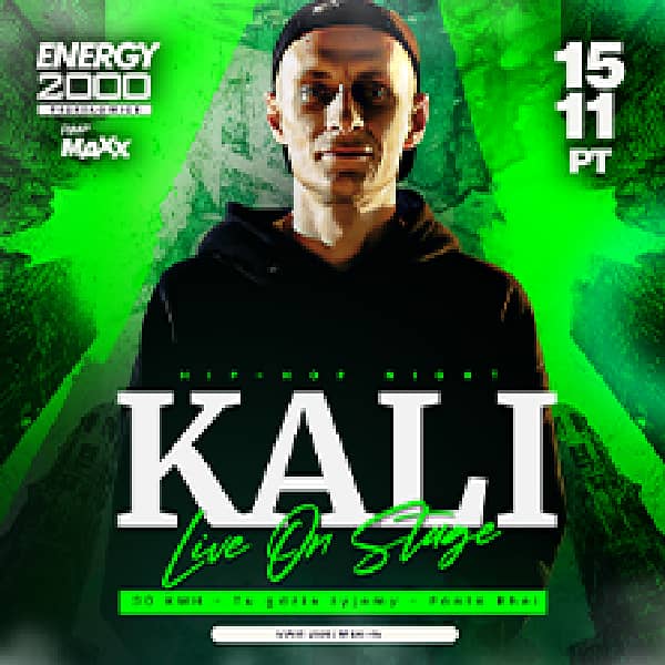 W piątek 15.11 zapraszamy na kolejną imprezę z cyklu HIP-HOP NIGHT. Na scenie pojawi się KALI ! Autor hitów: "Igristoje", "Tam gdzie Ty", "Miasto Boga" "OPARY", "30 KMH", "WSTAWAJ", "MONA LISA" i wiele innych. Tego wydarzenia naprawdę nie możecie przegapić.