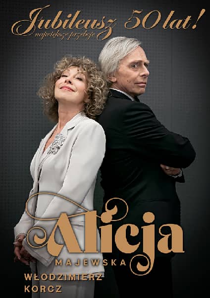 Alicja Majewska i Włodzimierz Korcz obchodzą okrągły jubileusz - 50 lat współpracy artystycznej. Z tej okazji ruszają w wyjątkową trasę koncertową, w czasie której usłyszą Państwo nie tylko największe przeboje Alicji Majewskiej, ale również piosenki, które mogą zaskoczyć wielu widzów. Artystom towarzyszyć będzie Warsaw String Quartet, a w największych i najpiękniejszych salach koncertowych 16 - osobowa orkiestra i zespół wokalny pod dyrekcją maestro Włodzimierza Korcza. Zapraszamy!