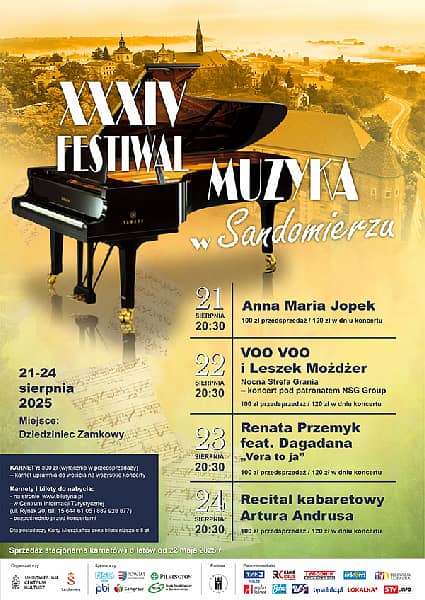 Wielkimi krokami zbliża się XXXIV edycja Festiwalu Muzyka w Sandomierzu. Tegoroczna odsłona festiwalu to cztery wyjątkowe koncerty, wśród których każdy słuchacz odnajdzie coś dla siebie. Zaproszeni artyści to znane i lubiane postaci polskiej sceny muzycznej.