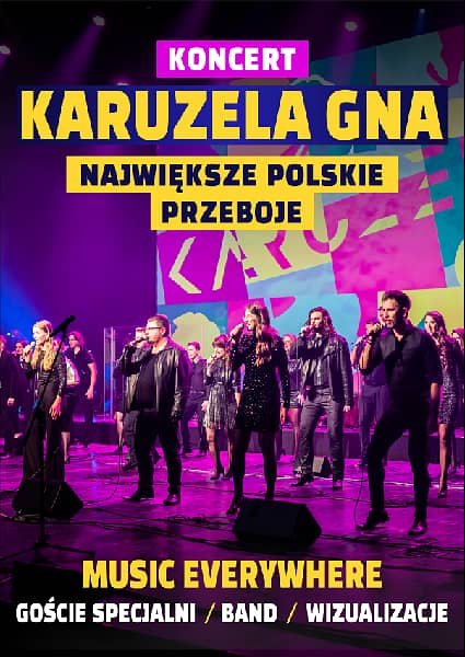 Koncert KARUZELA GNA to spektakularne wydarzenie, które zawiruje Waszym życiem. Usłyszycie zupełnie nowe aranżacje największych polskich przebojów. Nie zabraknie znanych wszystkim utworów, takich jak: "Biała Armia", "Zacznij od Bacha", "Cichosza", "Nie pytaj o Polskę" czy "Ludzkie gadanie".