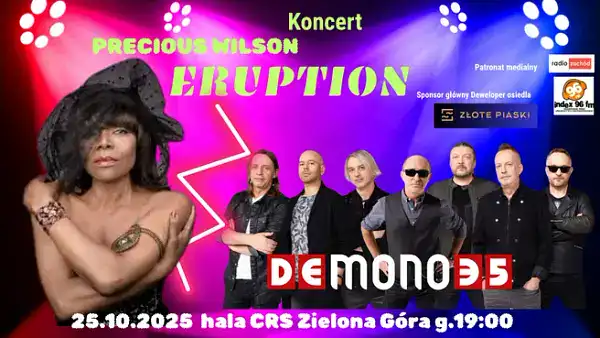 Koncert pełen emocji, tańca, nostalgii i żywej energii, ponadczasowy styl w nowoczesnym brzmieniu! Wyjątkowy wieczór z muzyką, która porusza serce i ciało. Zjawiskowa Precious Wilson z legendarnego zespołu Eruption po raz pierwszy w Zielonej Górze! Gościem specjalnym będzie zespół De Mono.