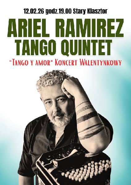 Ariel Ramirez to nie tylko mistrz bandoneonu, ale również dyrektor orkiestry tango, kompozytor, aranżer, maestro, tancerz i choreograf. Jego imponujący dorobek artystyczny obejmuje nie tylko przepiękne wykonania tanga, ale także unikalne kompozycje, które przenoszą nas w magiczny świat argentyńskiej muzyki ludowej. Jako wnuk jednego z najsłynniejszych kompozytorów o tym samym nazwisku, Ariel Ramirez jest ściśle związany z dziedzictwem muzycznym Argentyny. Nie tylko jest opiekunem jury mistrzostw świata w tangu, ale także założycielem El Tango Club Espacio Cultural oraz Muzeum Kultura Tanga Argentyńskiego, co świadczy o jego pasji i zaangażowaniu w promcję tej unikalnej formy sztuki. Ariel, jako charyzmatyczny i wybitny muzyk, rozsławia argentyńską muzykę ludową i tango nie tylko w Ameryce Łacińskiej, ale także w wielu krajach europejskich. Jego koncerty w najważniejszych salach koncertowych, gdzie prezentuje różnorodny repertuar - od tradycyjnego tanga po muzykę latynoamerykańską z motywami liturgicznymi czy kompozycje dla orkiestry symfonicznej - są niezapomnianym doświadczeniem. Ariel Ramirez nagrał wiele albumów, które zdobyły uznanie zarówno w Argentynie, gdzie współpracował z najbardziej znanymi zespołami i artystami, jak i w Europie, gdzie stworzył unikalne nagrania ze swoją orkiestrą tango. ARIEL RAMIREZ TANGO QUINTET został założony w 2010 roku w hołdzie autentycznemu brzmieniu TANGA ARGENTYŃSKIEGO, osiągane głównie dzięki transmisji dźwięku wyłącznie bandoneonu. Jest to grupa MIĘDZYNARODOWA, w skład której wchodzą wybitnI międzynarodowi muzycy o wielkim uznaniu na arenie krajowej i międzynarodowej. Quintet wzorowany jest na typowym modelu kwintetu słynnego Astora Piazzolli, (bandoneón, skrzypce, gitara, fortepian, kontrabas), co oddaje najgłębsze i najbogatsze brzmienie tanga.