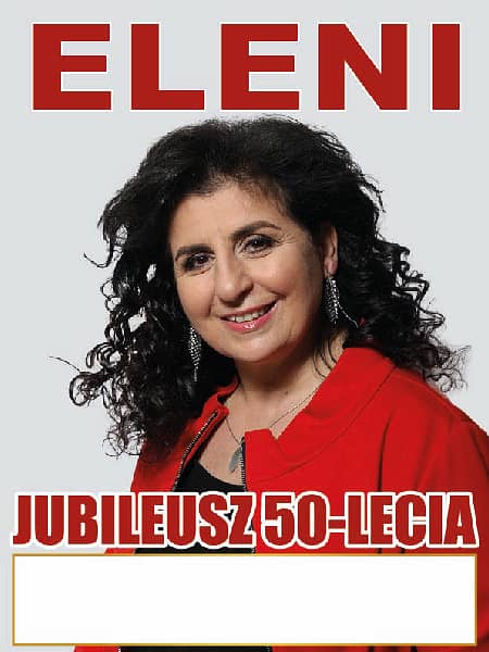 Zapraszamy państwa serdecznie na wyjątkowy, jubileuszowy koncert Eleni z zespołem. Będzie to muzyczna podróż z największymi przebojami piosenkarki ,które spiewa od 50 lat. Usłyszymy piosenki zespołu prometusz takie jak „ po słonecznej stronie życia”, „ ballado hej, ballado niepokorna” , w którym Eleni rozpoczynała karierę . Przeboje takie jak : miłość jak wino, troszeczkę ziemi troszeczkę słońca, po słonecznej stronie życia, a słońce sobie lśni – to kulminacja koncertu. Nostalgiczne , pełne refleksji piosenki : nic miłości nie pokona oraz nim świt obudzi noc – to druga część koncertu zakończona wiązanka przebojów greckich oraz zorbą. Trzecia część koncertu to największe przeboje lat 90 -tych oraz na zakończenie grecka piosenka w podziekowaniu publiczności za 50 lat obecności.