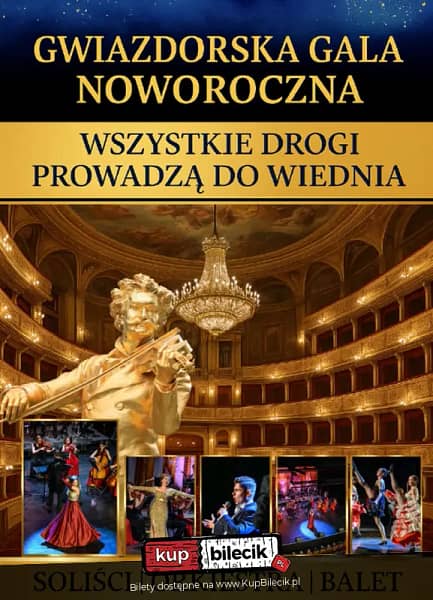 W ten jeden, wyjątkowy styczniowy wieczór zapraszamy Państwa na spektakularne wydarzenie muzyczne, które przeniesie słuchaczy w sam środek artystycznego raju - do złotego Wiednia, światowej stolicy walca, operetki i ponadczasowej elegancji. Gwiazdorska Gala Noworoczna to najlepsze i najbardziej widowiskowe show noworoczne w Polsce - koncert, który od lat zachwyca publiczność rozmachem, klasą wykonania oraz niepowtarzalną atmosferą prawdziwego muzycznego święta. To idealne połączenie tradycji wiedeńskich koncertów noworocznych z nowoczesną formą sceniczną, pełną emocji, światła i artystycznej energii.