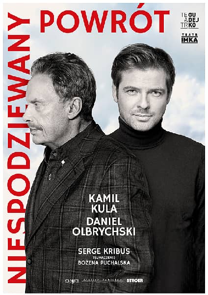 Gąszcz różnych wątków, które splatają się w wyśmienity spektakl – to właśnie „Niespodziewany powrót”. Spektakl w gwiazdorskiej obsadzie – na scenie Olbrychski i Kula – gwarantuje doskonałą rozrywkę. Za produkcję odpowiada Teatr Gudejko, twórca takich hitów, jak „Nerwica natręctw”, „Między łóżkami” czy „Goło i wesoło”.